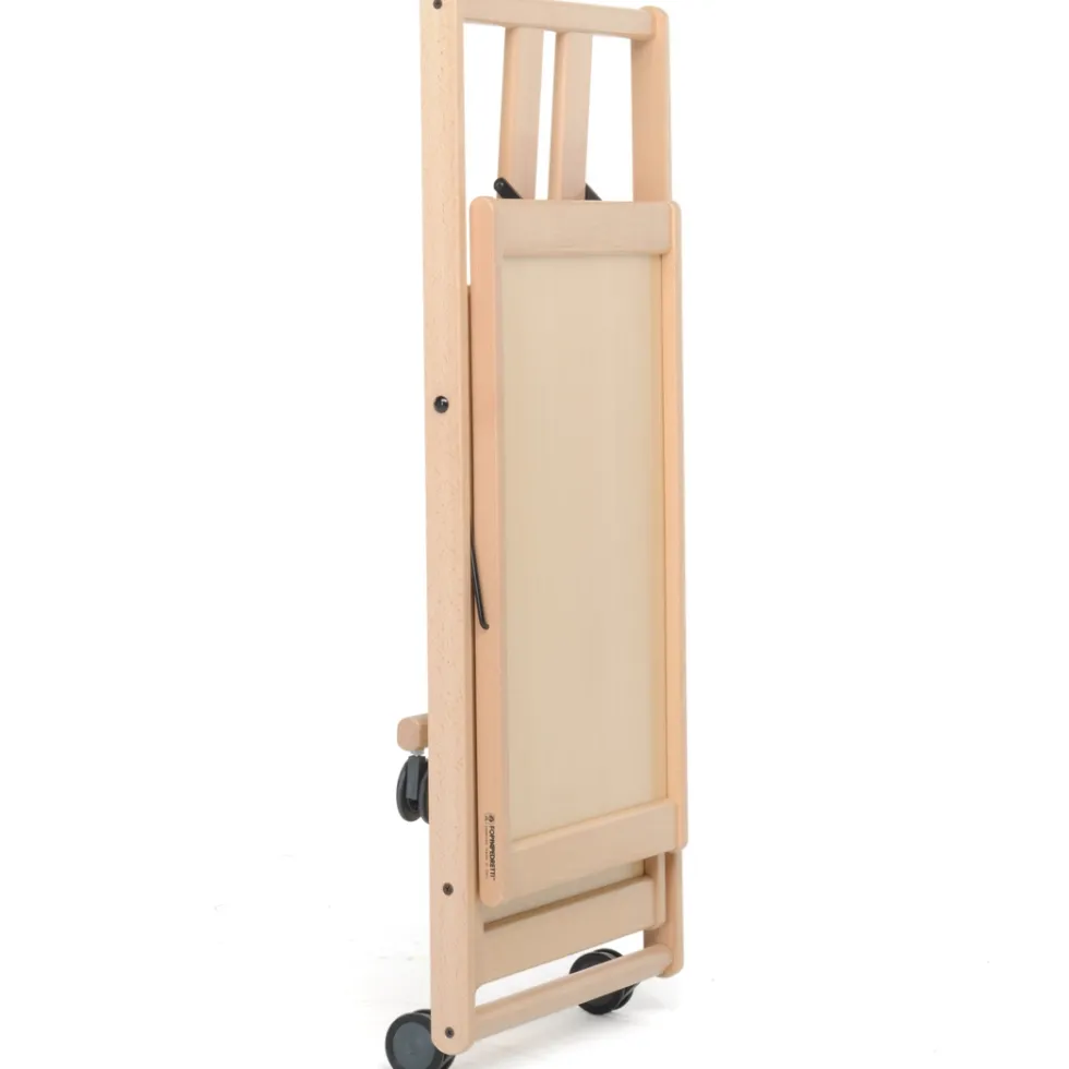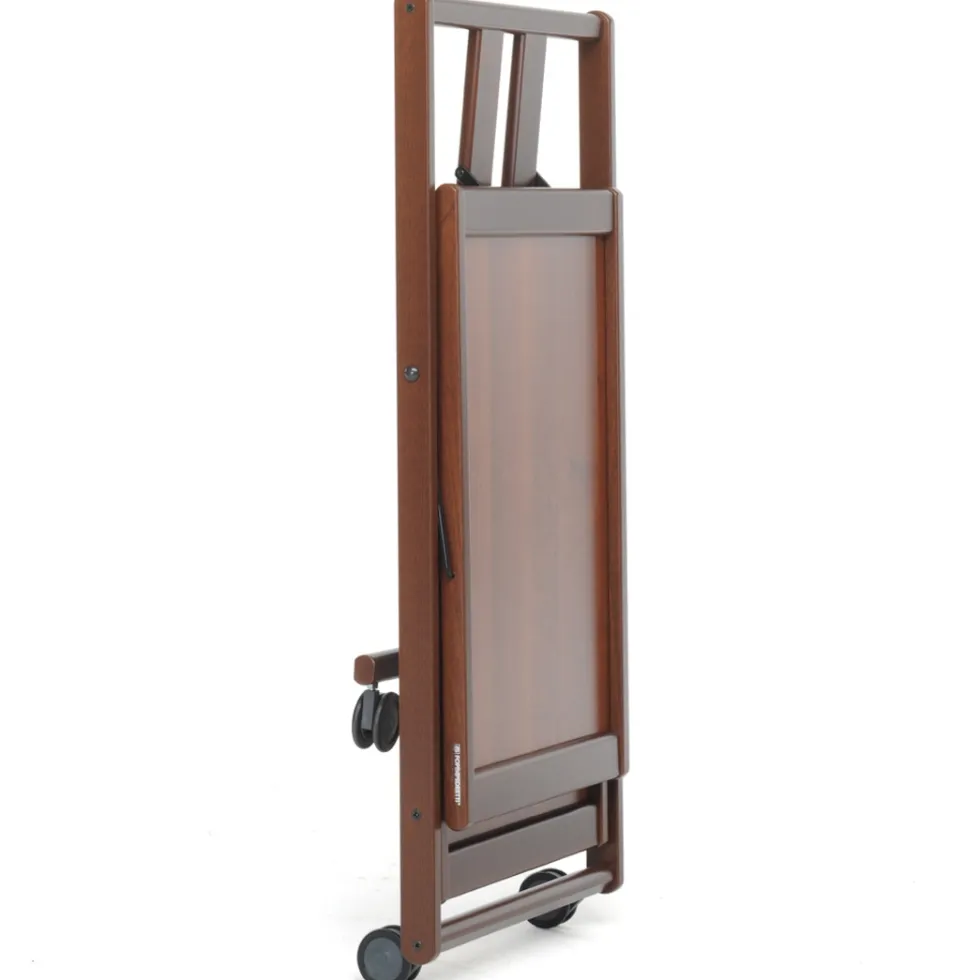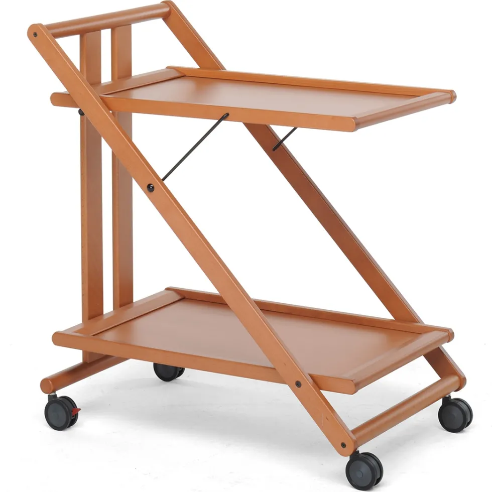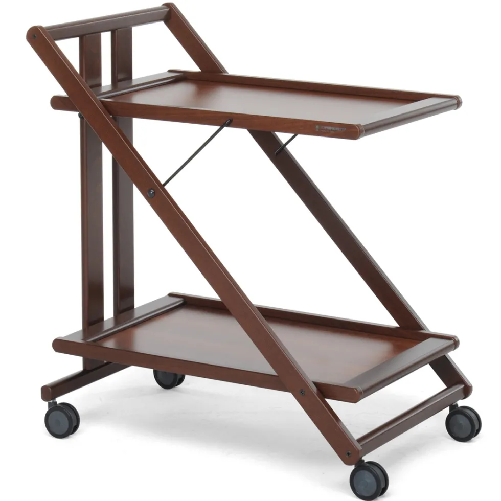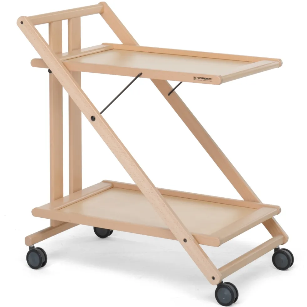 Il carrello in legno pieghevole Sprint di Foppapedretti è un comodo portavivande che, quando è chiuso, occupa pochissimo spazio: solo 11 centimetri! Ha due ampi vassoi portavivande e un particolare meccanismo a scatto che consente una facile apertura e chiusura. La solida struttura in legno massiccio di faggio verniciato si sposta facilmente grazie a ruote gommate piroettanti antigraffio.
