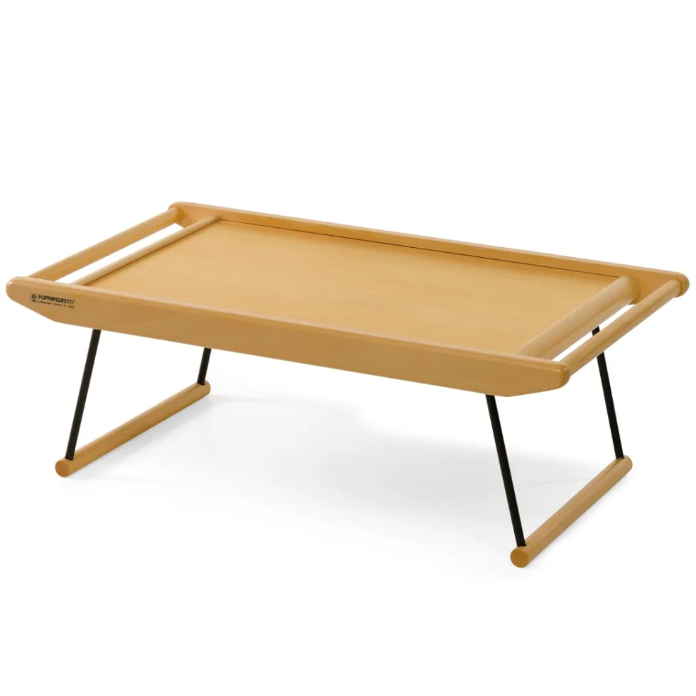 Il vassoio in legno Breakfast di Foppapedretti si trasforma in pratico leggio, grazie al piano inclinabile a più posizioni. Solido grazie alla struttura in legno massiccio di faggio verniciato, quando è chiuso occupa pochissimo spazio: poco più di 5 centimetri! È dotato di appoggi a scomparsa e maniglie di trasporto.