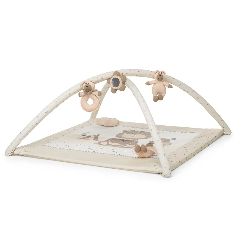 Il tappeto gioco con palestrina Trainer di Foppapedretti si utilizza dalla nascita: è ideale per stimolare il neonato con giochini sensoriali e peluche, sia sul tappetino sia sugli archi rimovibili. L’ampio tappeto è imbottito e morbido al tatto, è sfoderatile e facilmente lavabile, i giochi con velcro sono riposizionabili.