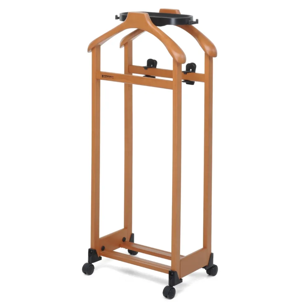 L’indossatore in legno IlMettinsieme di Foppapedretti è un servomuto con due spalle per appendere giacche e camicie, una staffa porta pantaloni e un’altra con pinze regolabili per appendere le gonne.