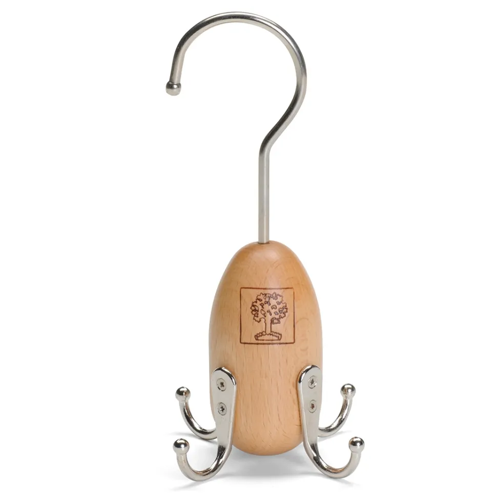 Il portacinture in legno Giorgio di Foppapedretti ha un gancio per essere appeso negli armadi e 4 ganci cromati per appendere le cinture.