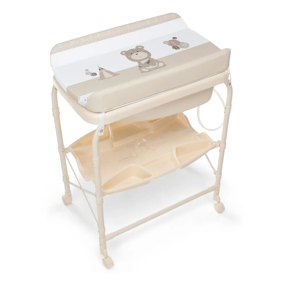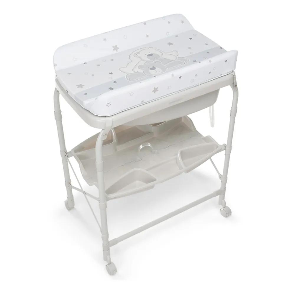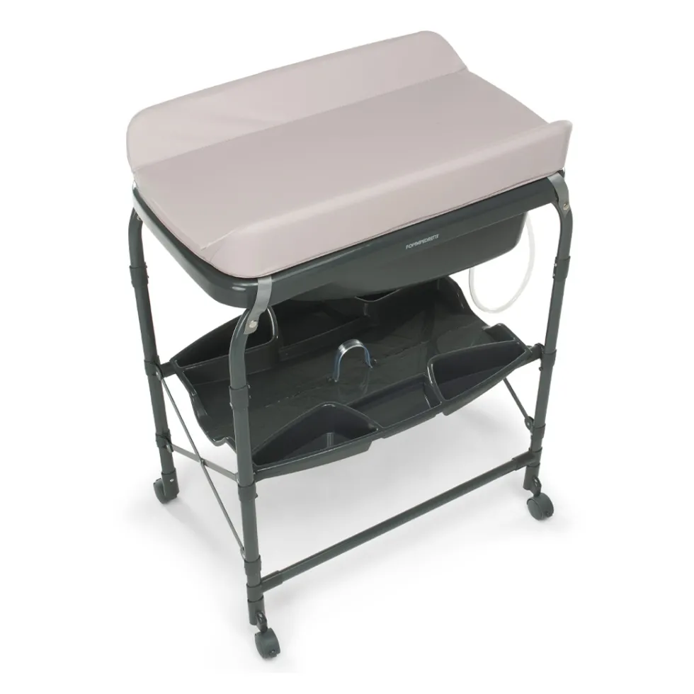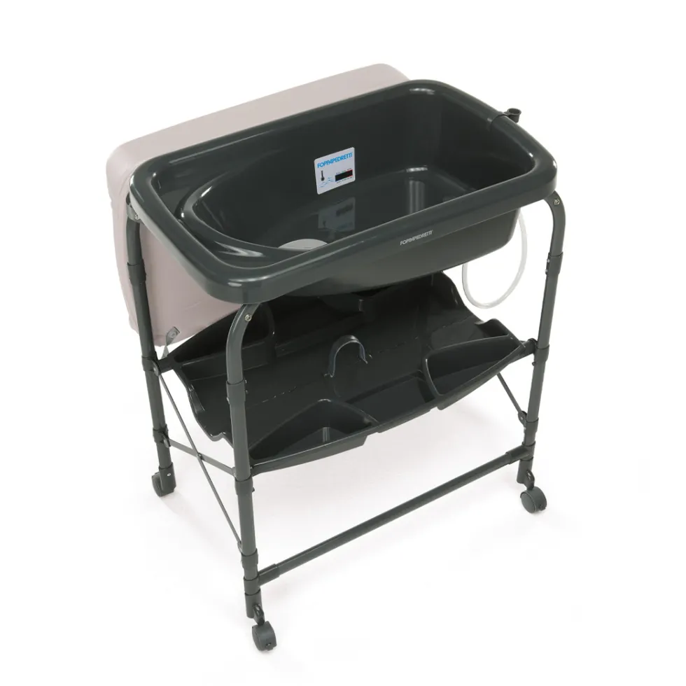 Il bagnetto con fasciatoio chiudibile Splash di Foppapedretti ha design anatomico per garantire sicurezza e comodità al neonato e al bambino ed è salvaspazio e posizionabile sopra al bidet: quando non serve, si chiude e sta in piedi da solo in posizione “self standing” e ha 4 ruote piroettanti e frenanti per essere spostato facilmente. La vaschetta per il bagno ha termometro integrato per monitorare la temperatura dell’acqua, tappetino antiscivolo rimovibile e pratico kit di scarico con tappo e prolunga. Ha anche un ampio vassoio porta oggetti e il materassino per il cambio è incluso.