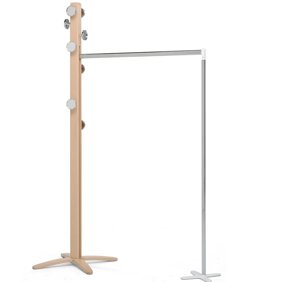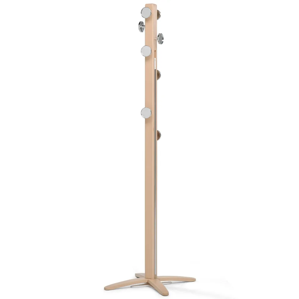 La piantana appendiabiti in legno Espansiva di Foppapedretti ha barra portaometti a scomparsa estensibile. Dotata anche di 8 pomoli con specchio per appendere giacche e cappotti, ha solida struttura in legno di faggio verniciato. Espansiva è indispensabile quando ci sono molti ospiti, ma anche quando si stira.