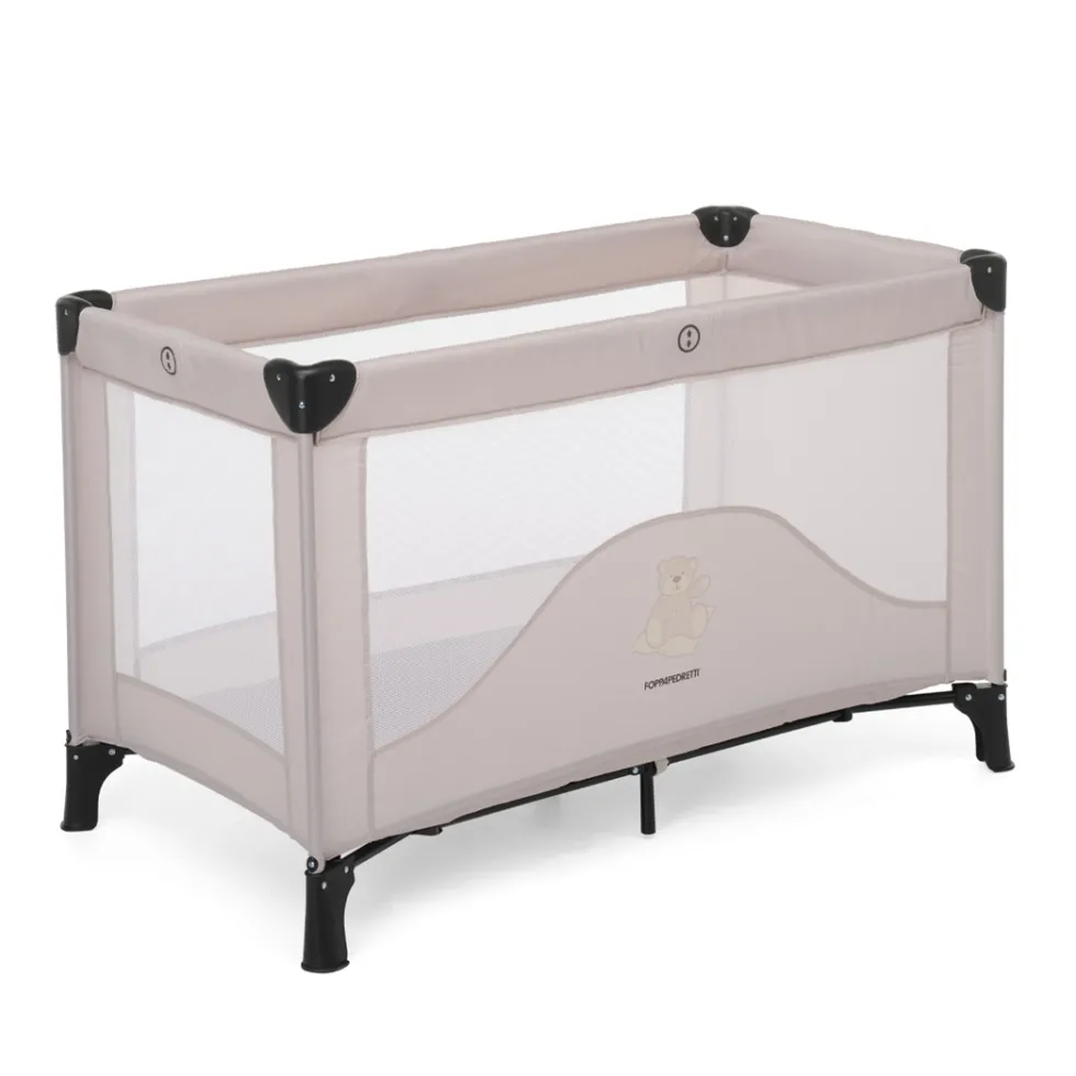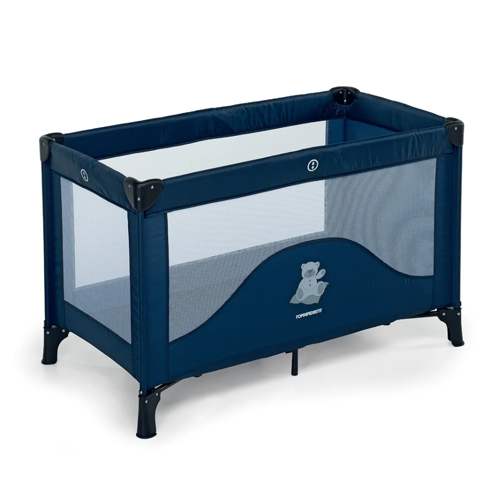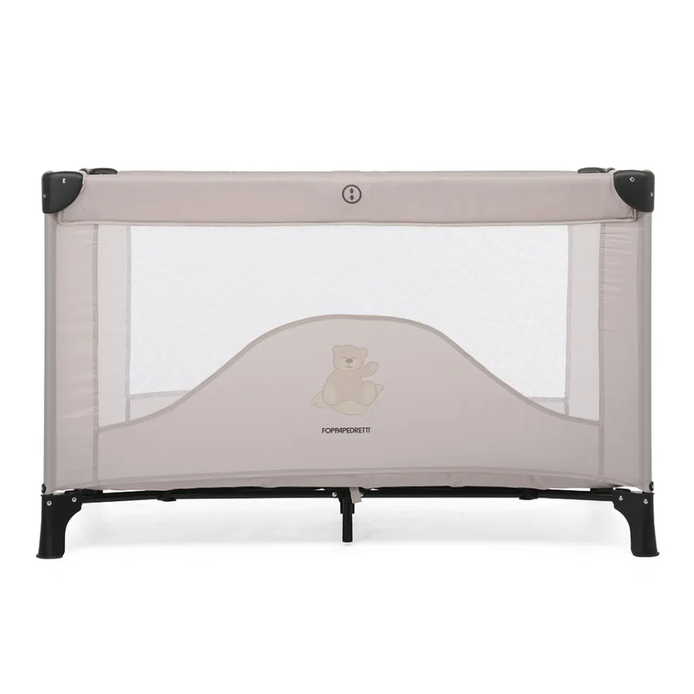 Il lettino da viaggio pieghevole Teddytour di Foppapedretti si chiude occupando pochissimo spazio. Può essere trasportato facilmente nella pratica borsa inclusa.