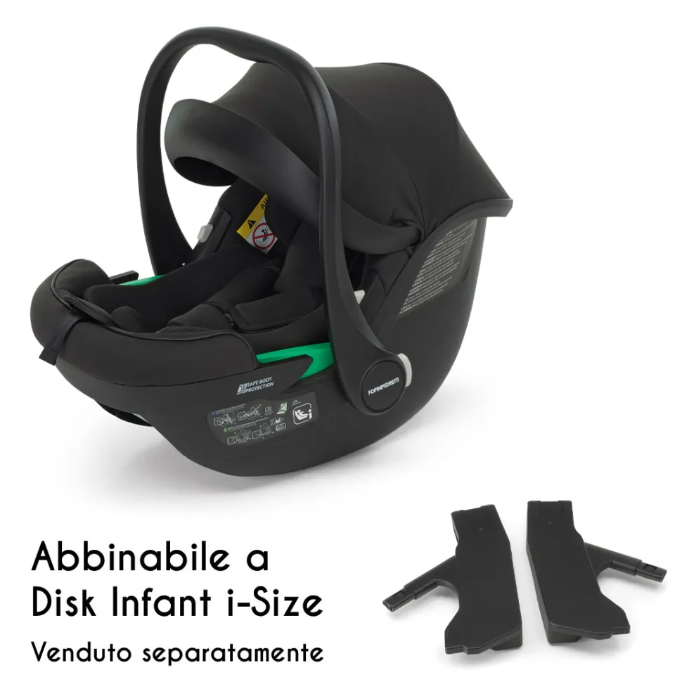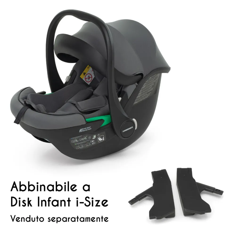 Il nuovo per i primi mesi (per bambini da 40 a 87 cm di altezza, max 13 kg). L’ovetto è completamente reclinabile per garantire il massimo comfort al neonato, si utilizza agganciato al passeggino grazie agli appositi adattatori (venduti separatamente).