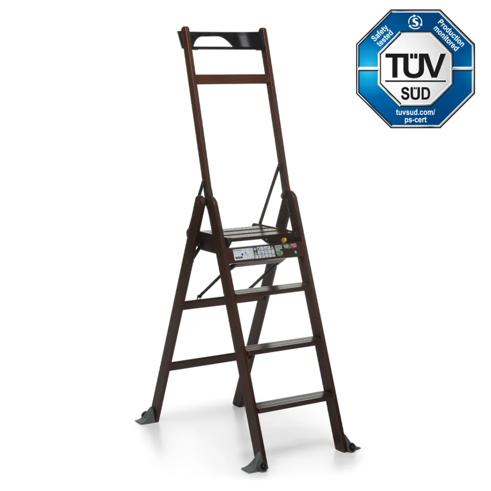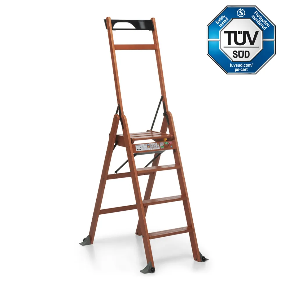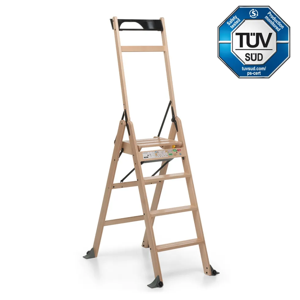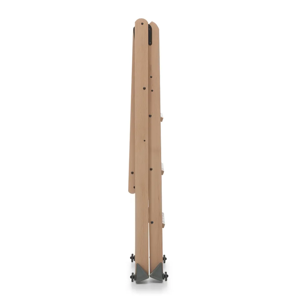 La scala in legno laScala 4.0 di Foppapedretti è solida e sicura: sta in piedi da sola anche quando è chiusa occupando poco spazio. Ha piedini antiribaltamento e gradini antiscivolo.