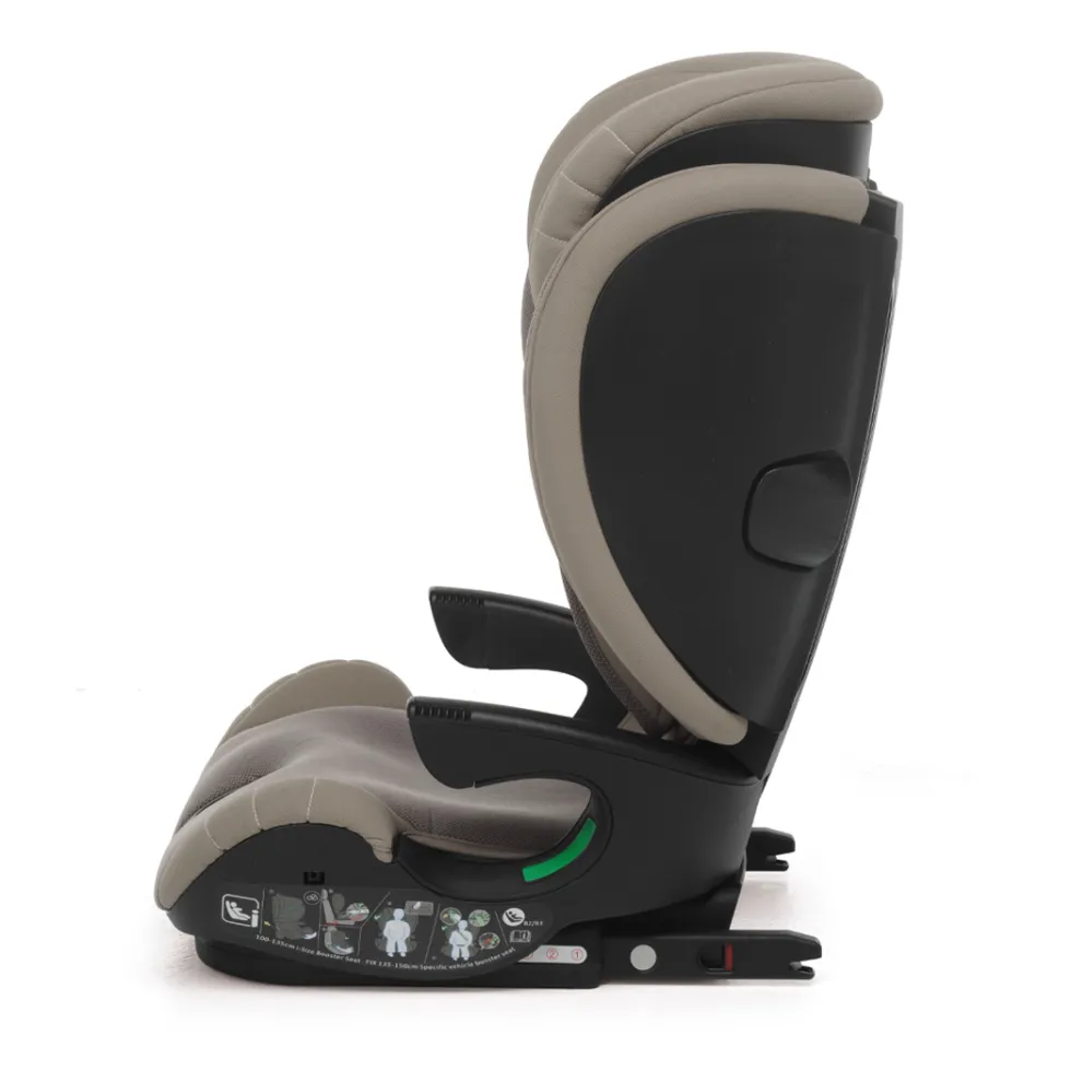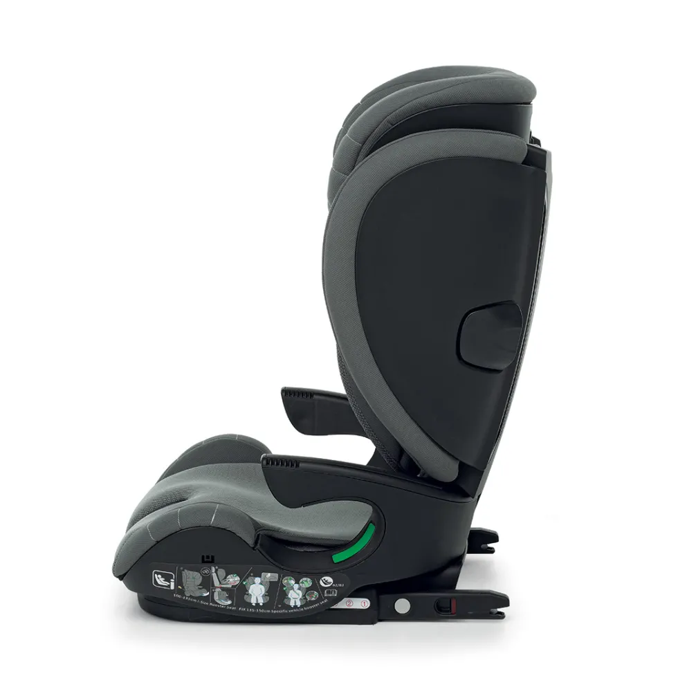 Lo schienale è inclinabile per adattarsi a qualsiasi sedile dell’auto, sicurezza dagli impatti laterali, imbottiture interne per maggiore comfort oltre a sedile e braccioli ergonomici. Il rivestimento è removibile e lavabile.