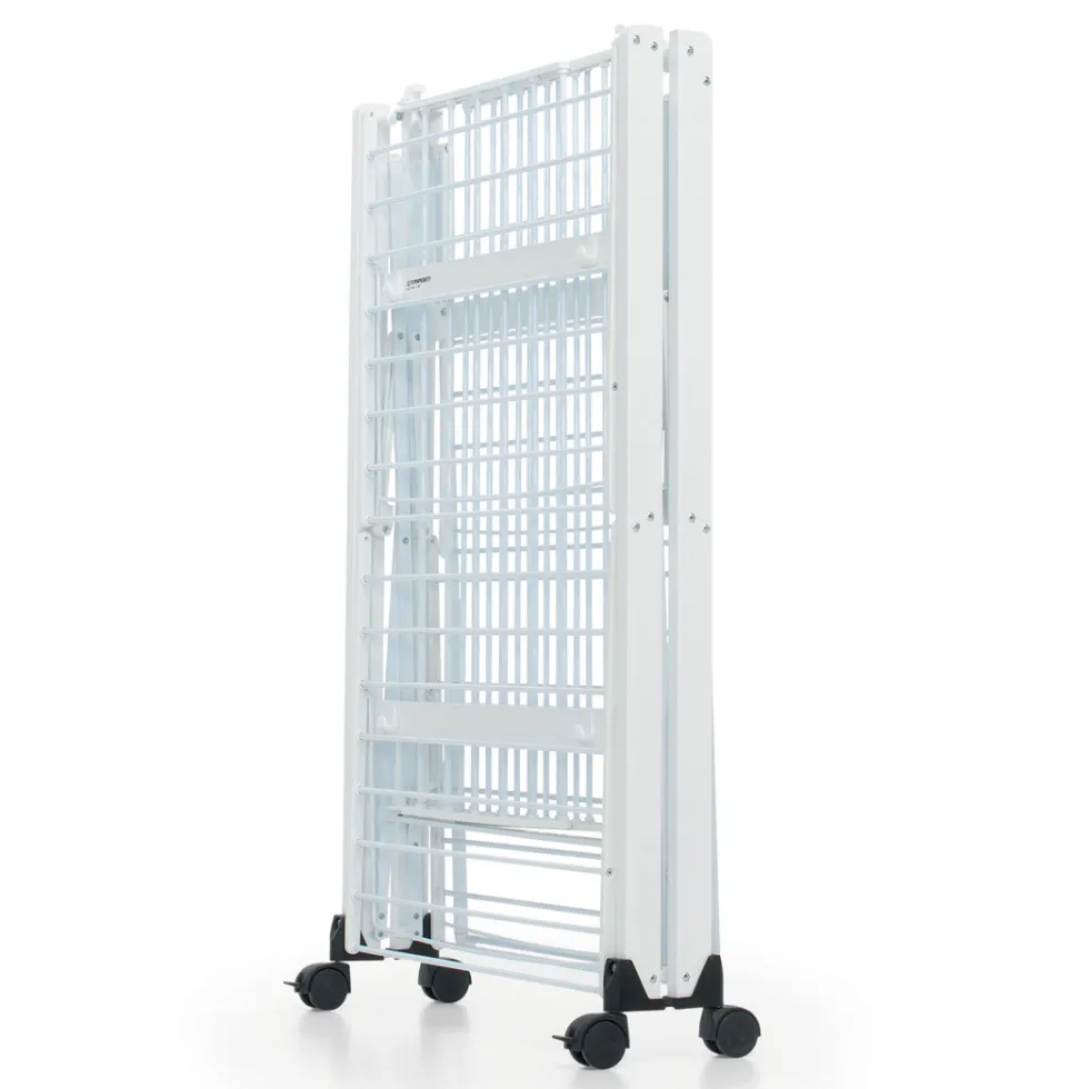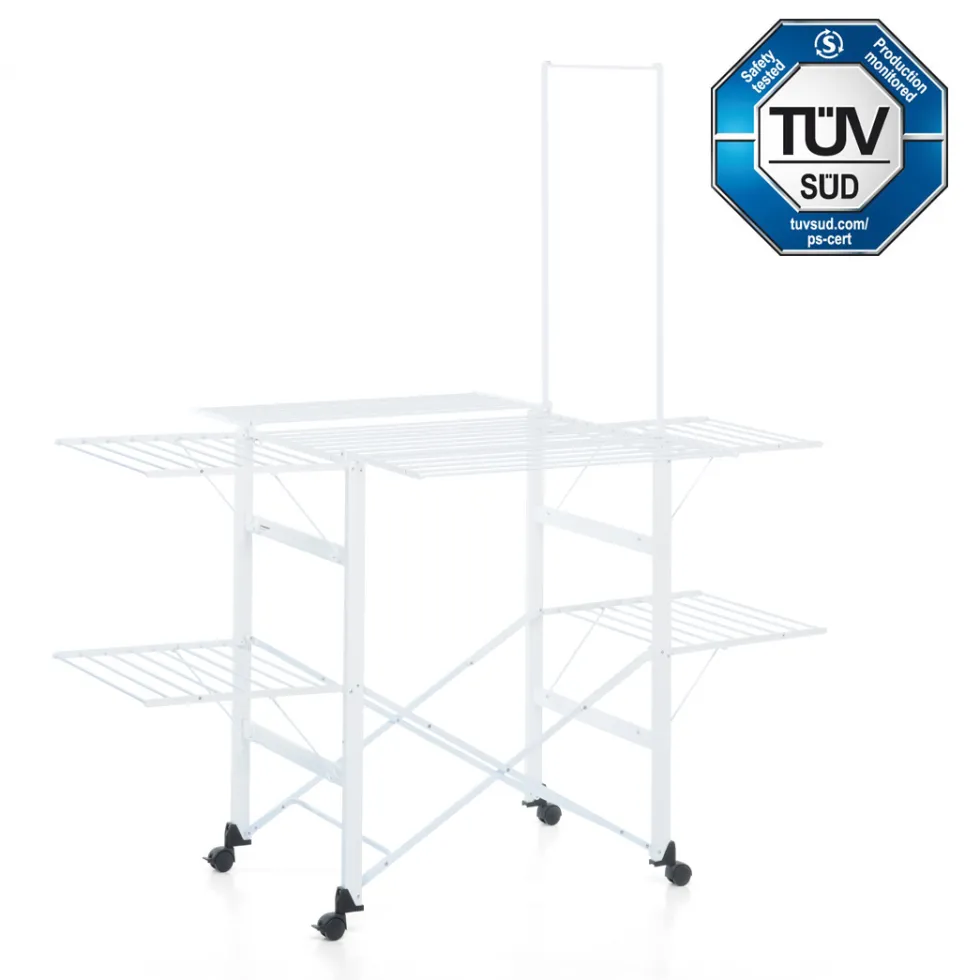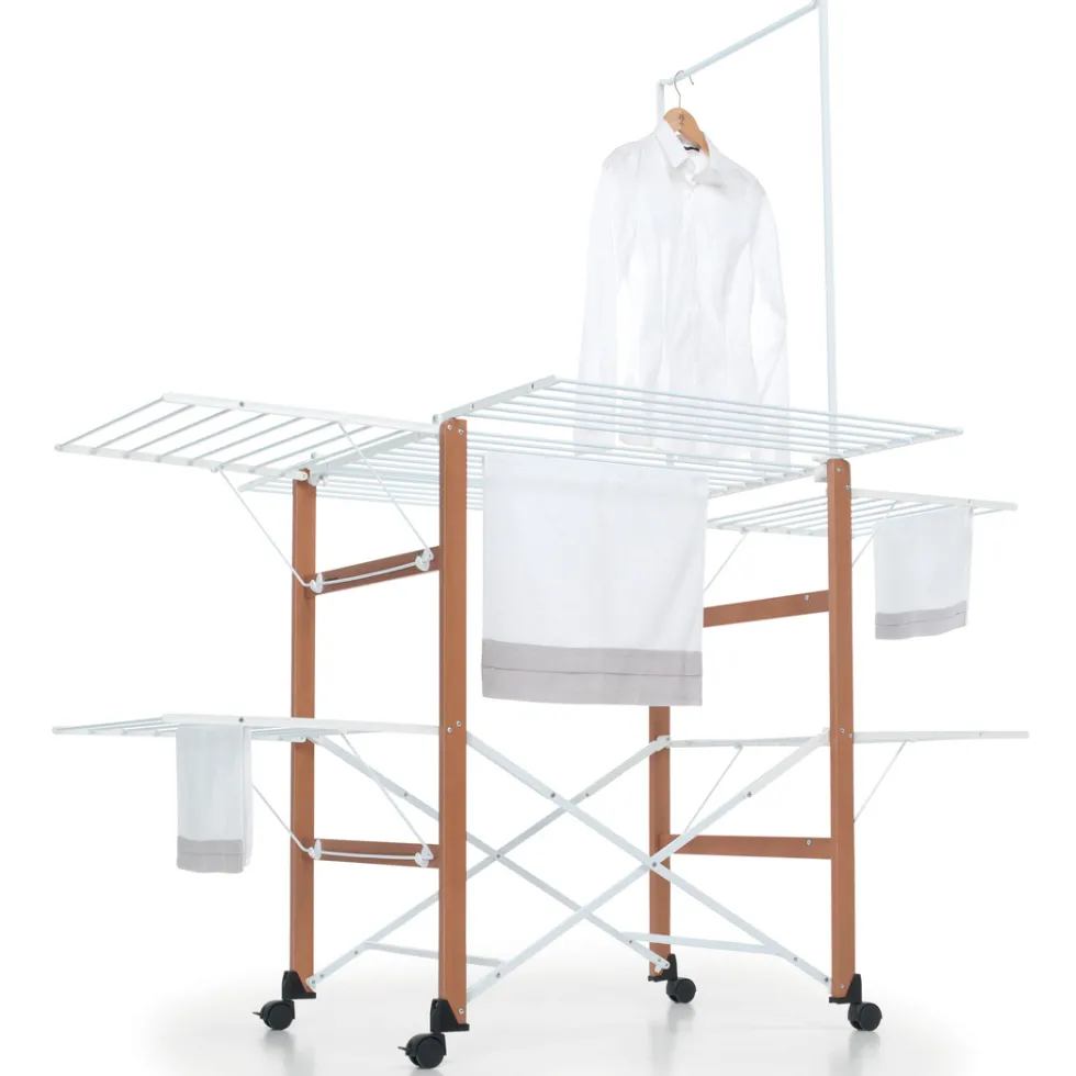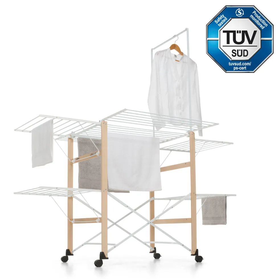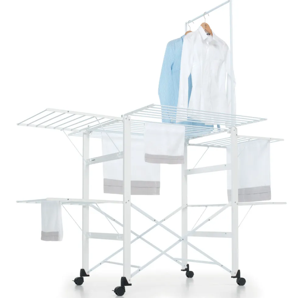 Lo stendibiancheria pieghevole SuperGulliver è ideale per grandi quantità di bucato: offre ben 35 metri di filo utile per stendere e ha una comoda barra porta spalle, che scompare facilmente quando non serve.