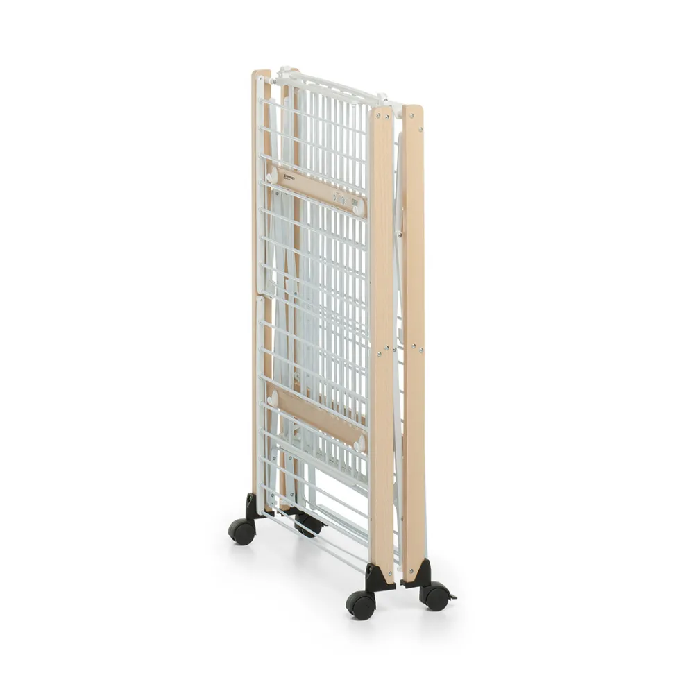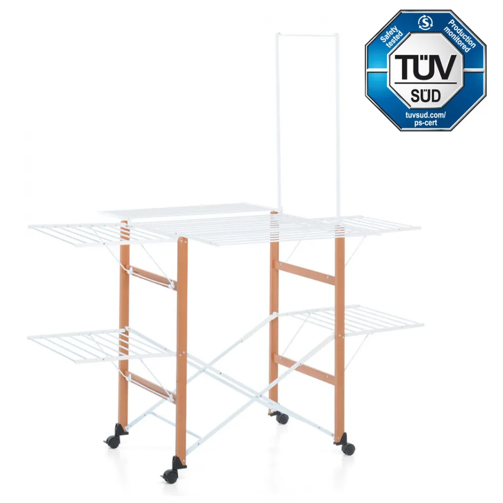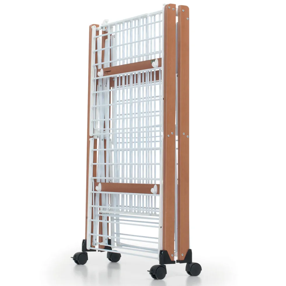 È molto stabile grazie alla struttura in legno massiccio con bacchette in alluminio verniciato, ma anche davvero facile da spostare grazie alle 4 ruote piroettanti, delle quali 2 con freno.