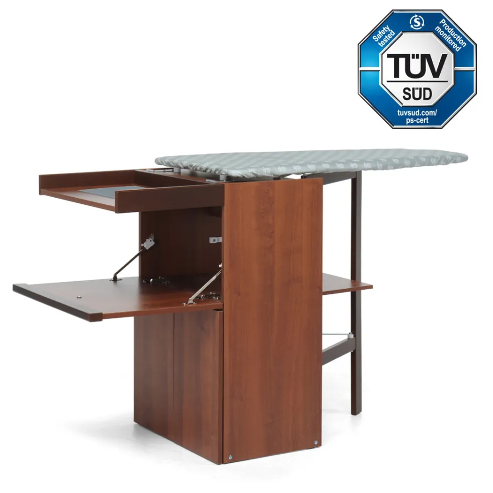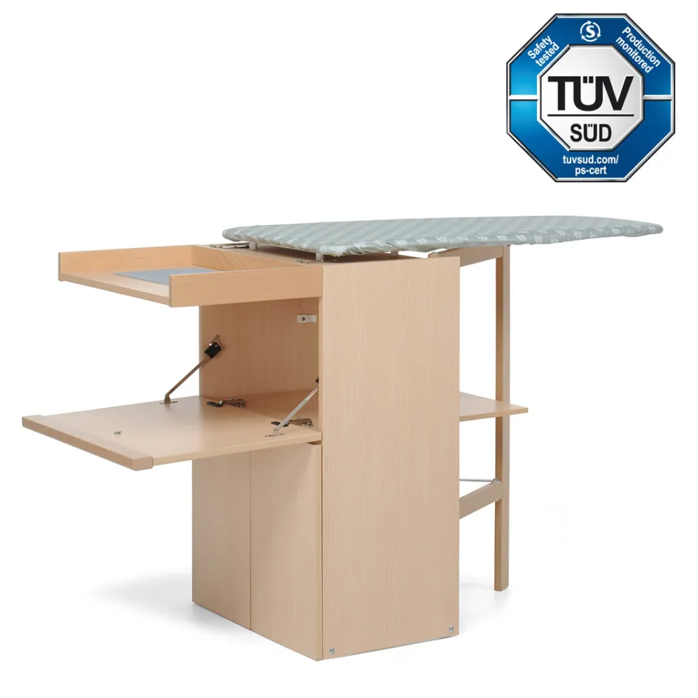 LoStiro, quando è chiuso, è un mobiletto elegante e raffinato e si sposta facilmente grazie a ruote antigraffio. La solida struttura del mobiletto è in truciolare nobilitato, il telaio di sostegno al piano da stiro è in legno massiccio di faggio verniciato, mentre il piano da stiro in pioppo ha fori traspiranti.