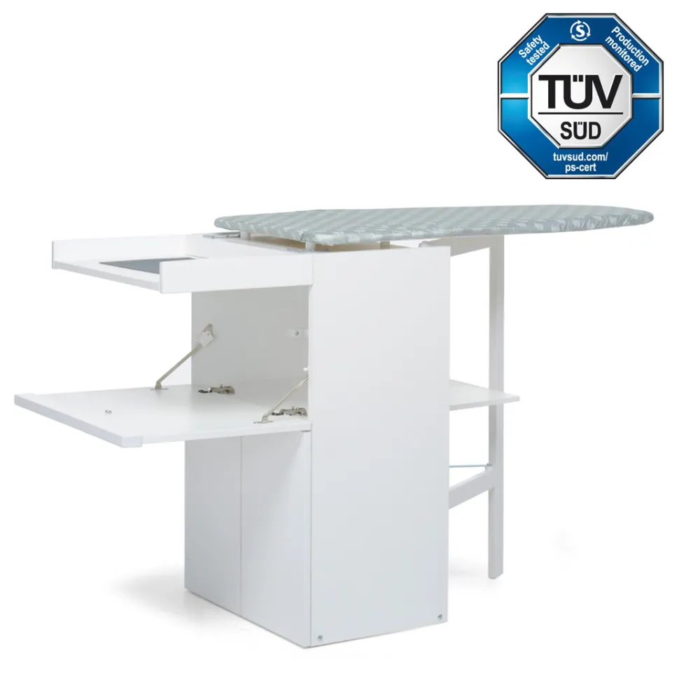 – l’asse da stiro scompare dentro al mobiletto, che si adatta a ogni tipo di arredamento grazie al design lineare ed elegante