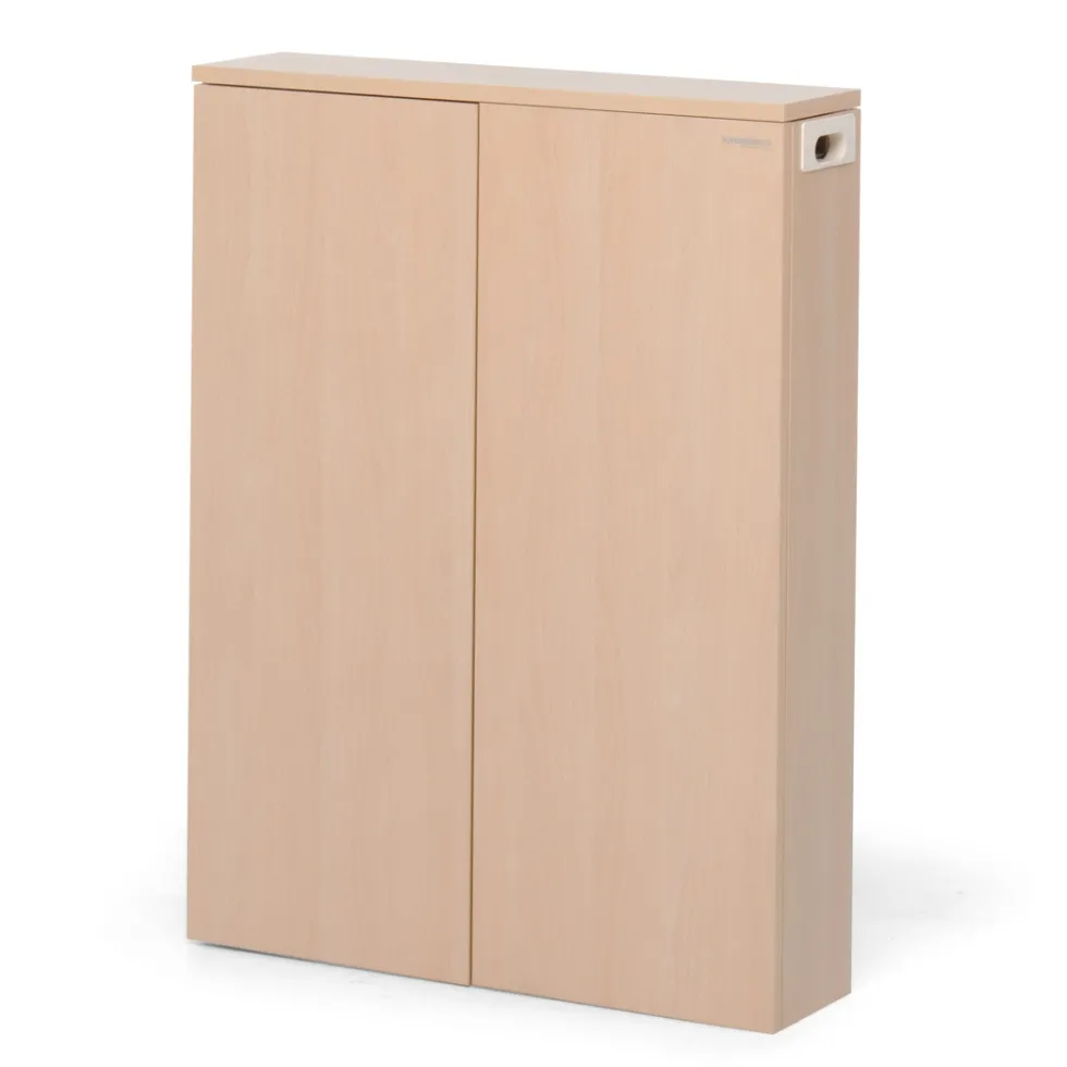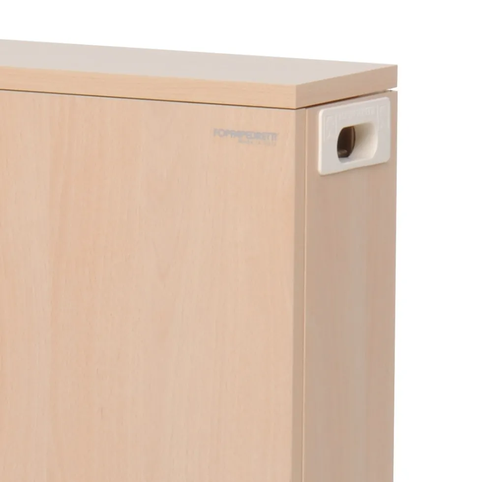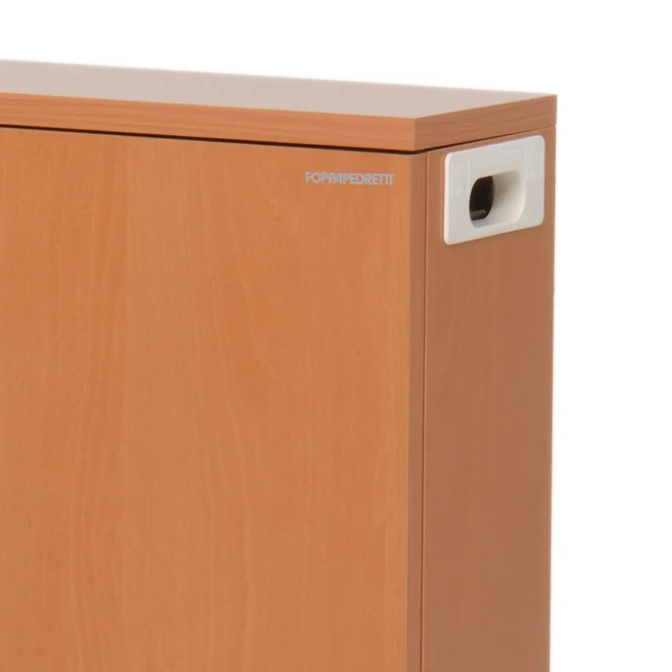 L’asse da stiro Stiraemolla di Foppapedretti si ripiega a scomparsa dentro al mobile in legno. Quando è chiuso, occupa pochissimo spazio: l’ingombro del mobiletto è di soli 17 centimetri!