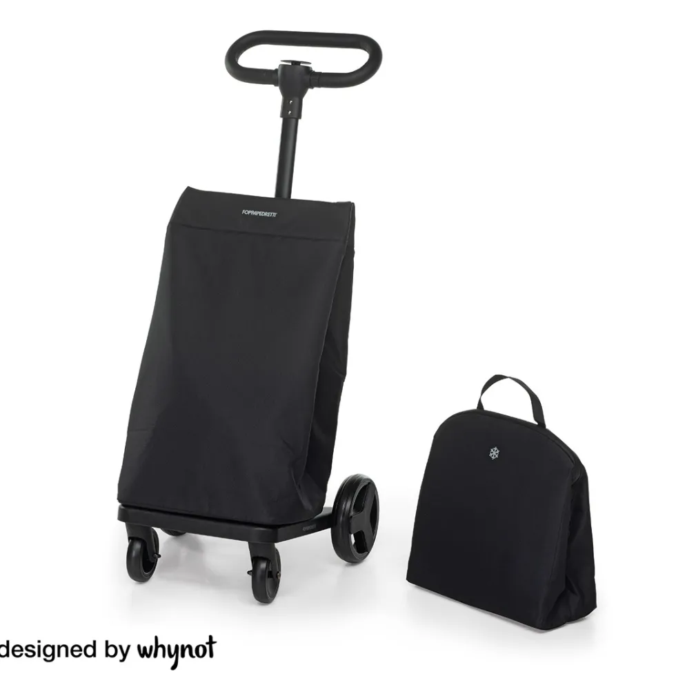 Il carrello per la spesa GO GO di Foppapedretti è chiudibile, leggero e compatto e può diventare anche un carrello porta bottiglie. Il manico con impugnatura in tessuto effetto pelle è regolabile in altezza. La sacca spesa capiente (46 litri), in tessuto impermeabile e con copertura antiacqua, è amovibile per essere trasportata comodamente con tracolla. Ha una pratica tasca interna portaoggetti con zip e la sacca interna è removibile. È dotato anche di una borsa termica con maniglia da trasporto, removibile e capiente (8 litri) per i cibi surgelati e freschi.