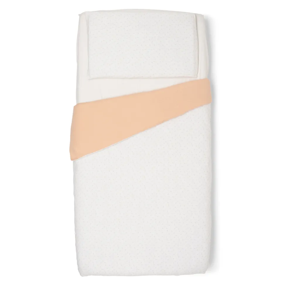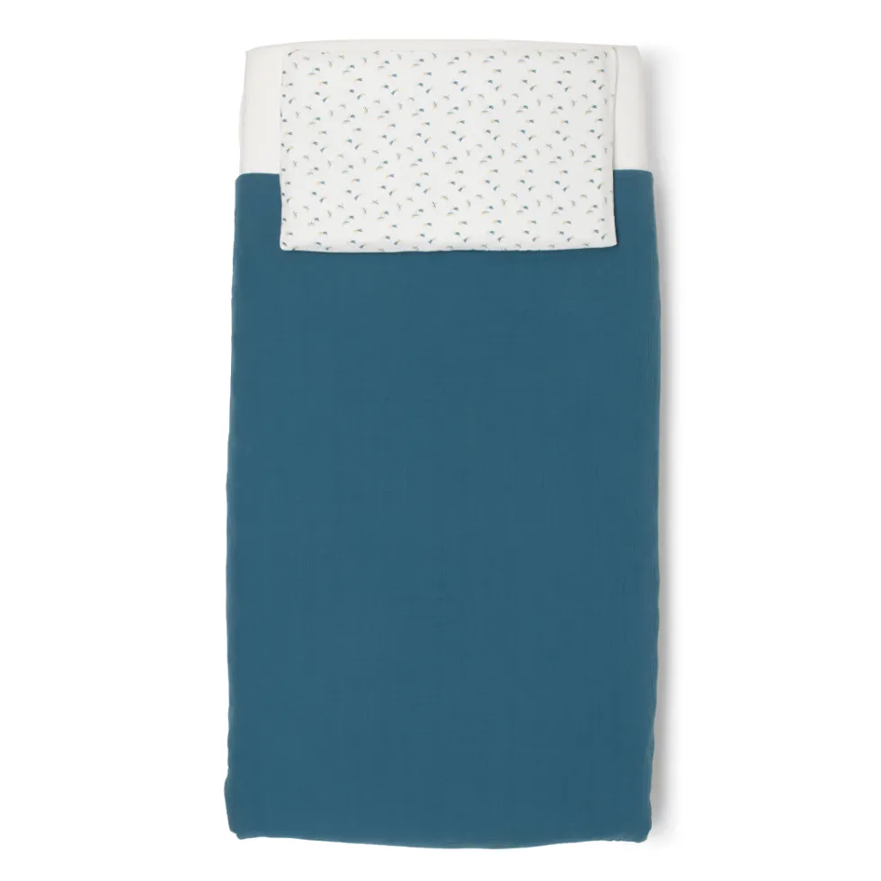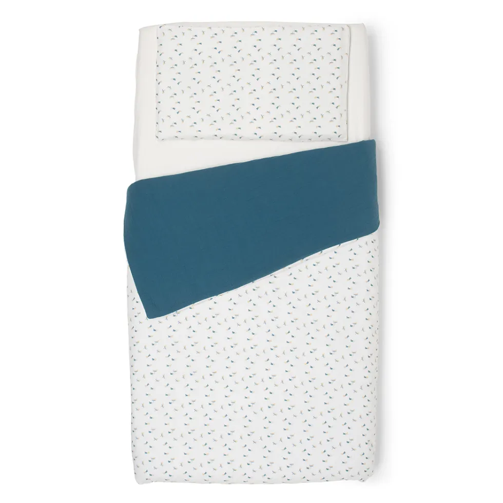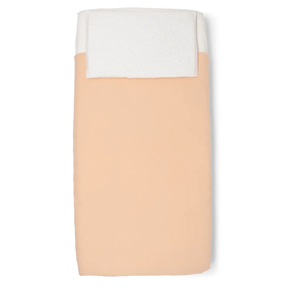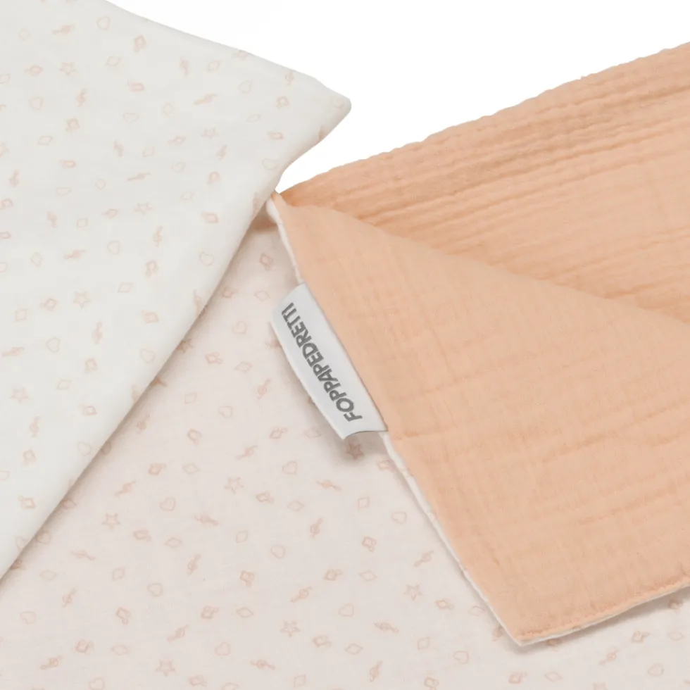 Il completo piumone double-face per culla Evo di Foppapedretti Mammamia Collection è realizzato in mussola 100% cotone Oeko Tex ed è composto da fodera per piumino 100×100 cm e federa 35×25 cm.