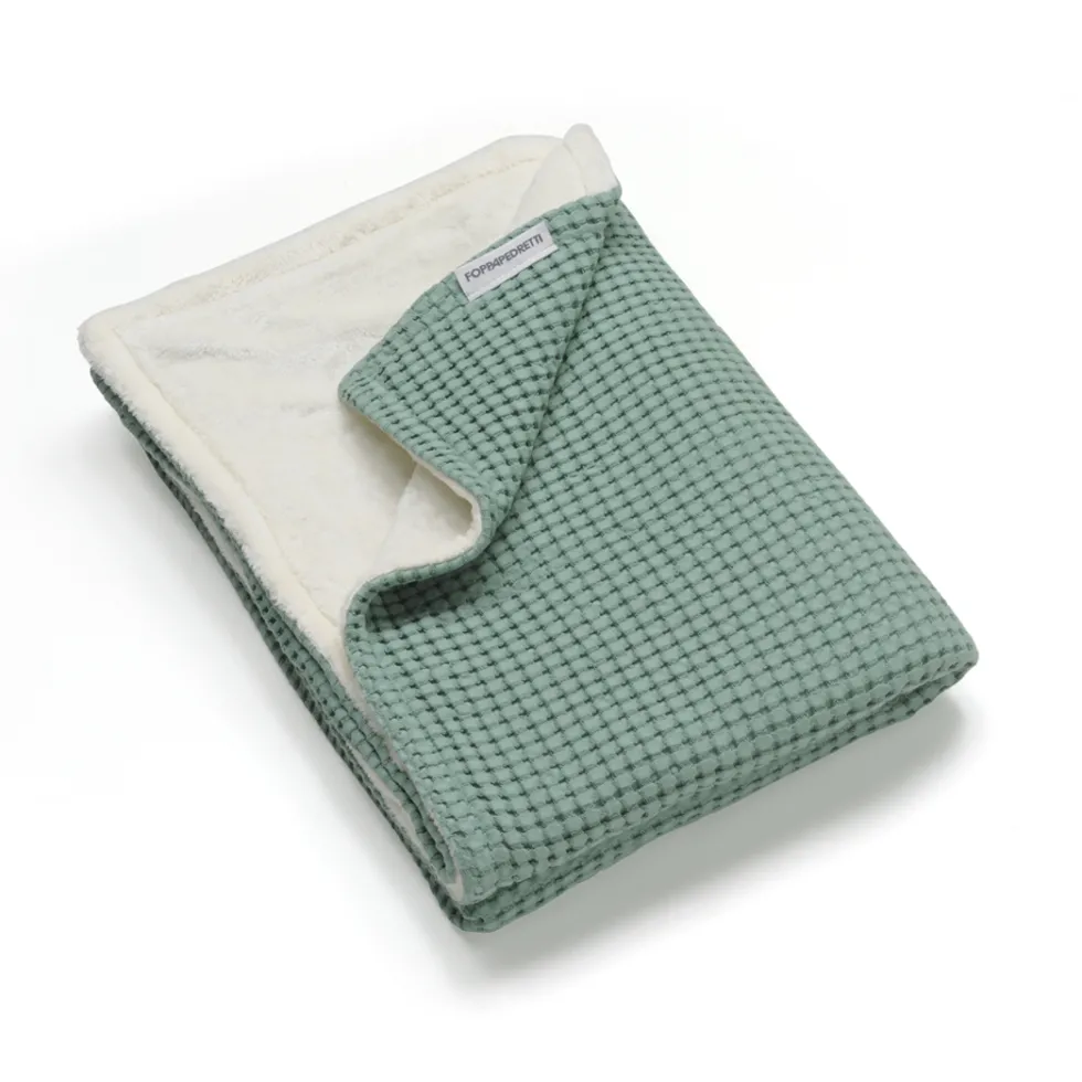 La copertina invernale per culla Evo di Foppapedretti Mammamia Collection è realizzata in morbido tessuto con trama waffle, double face 100% cotone Oeko Tex con retro in tessuto morbido.