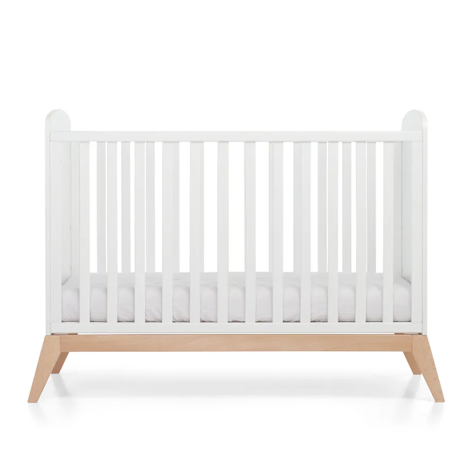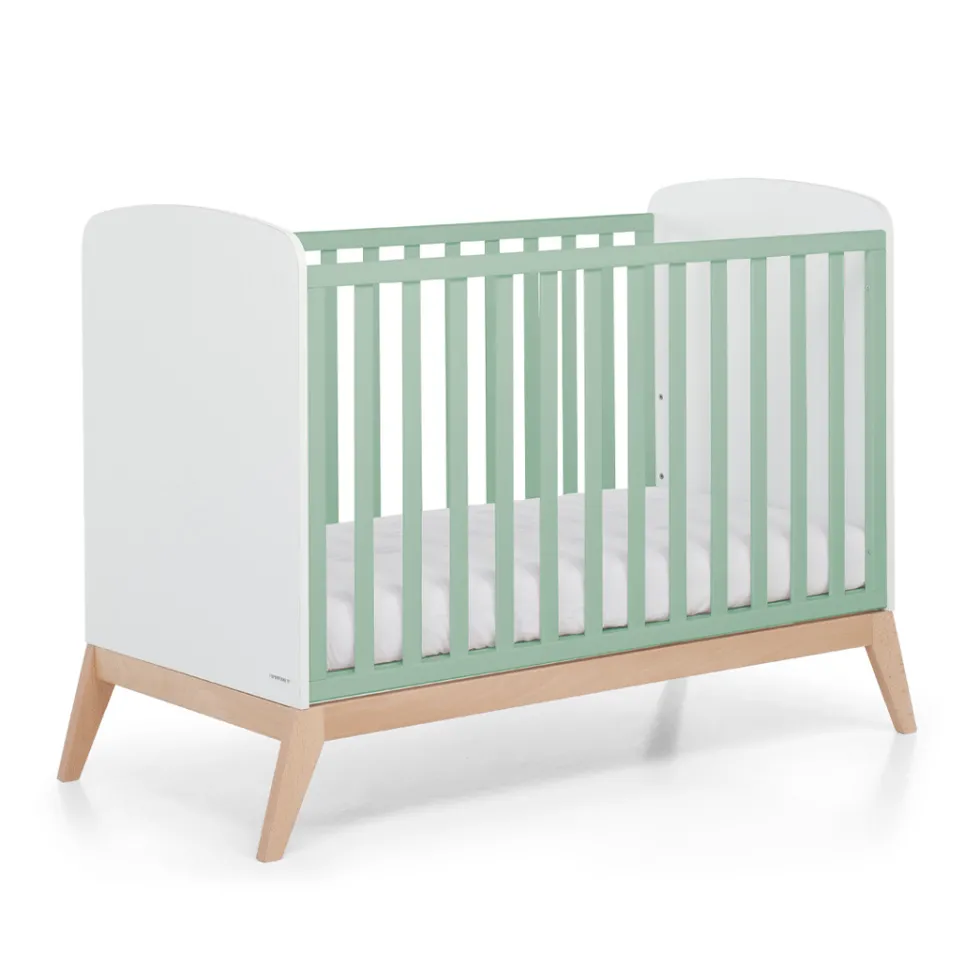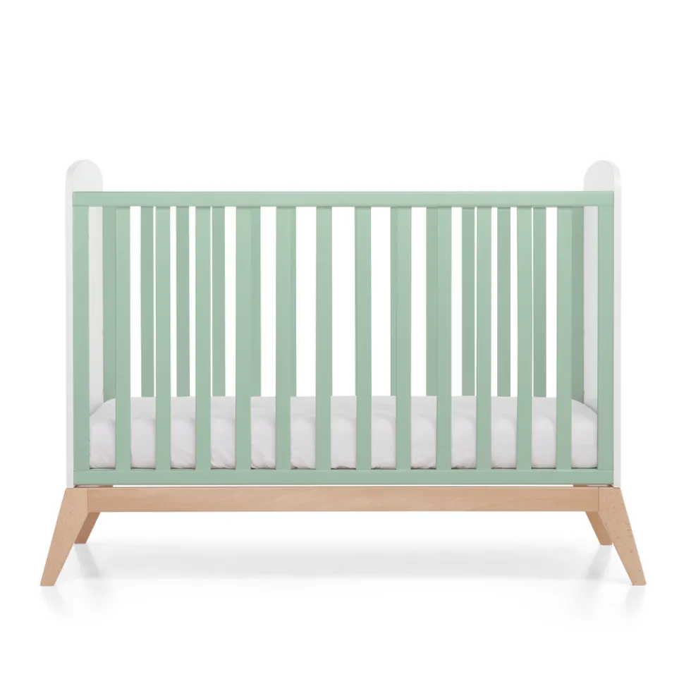 Il lettino in legno Bacio di Foppapedretti Mammamia Collection si distingue per il design dalle forme arrotondate e classiche, con uno stile romantico, e segue la crescita del bambino: la rete a doghe è regolabile a tre altezze. Il lettino è verniciato con colori atossici.