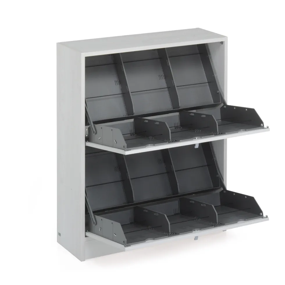Cenerentola 12 H di Foppapedretti è un mobile scarpiera modulare che contiene fino a 12 paia di scarpe (taglia massima compatibile 44 compresa). La struttura solida e robusta e il design elegante e essenziale la rendono adattabile a tutti gli stili di arredamento: Cenerentola è modulare e disponibile in varie dimensioni e colori. Per garantire la massima funzionalità, Cenerentola ha vaschette facilmente lavabili, con elastici ferma scarpe, apertura facilitata dalle maniglie in dotazione e separatore regolabile in larghezza che permette di adattare il vano in funzione della dimensione delle scarpe. Areazione assicurata grazie al pannello schienale traspirante. Il prodotto è Made in Italy e viene consegnato già assemblato.