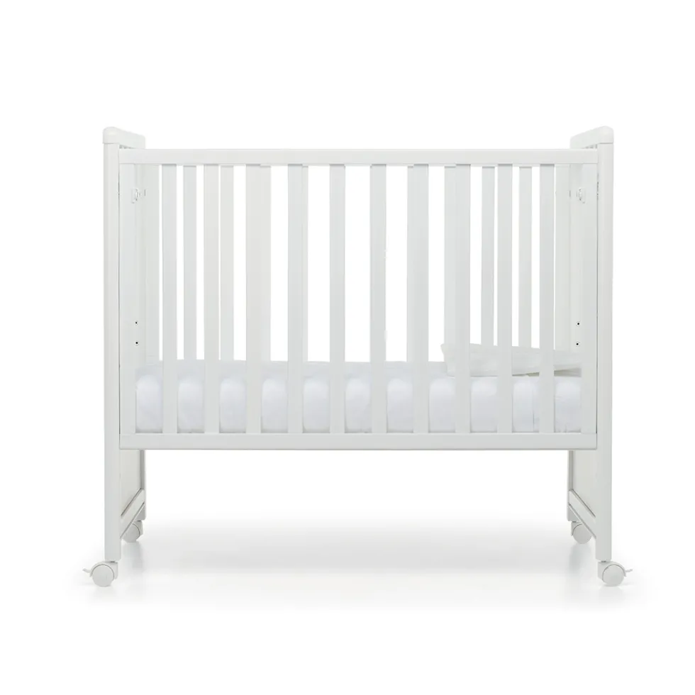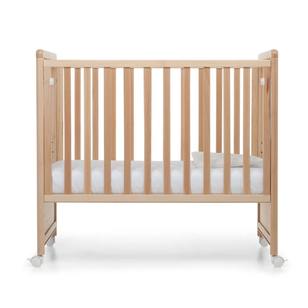 Pikkoletto ha una solida struttura in legno massiccio di faggio, verniciata con colori atossici, e 4 ruote piroettanti (due con freno). Il materasso è incluso.