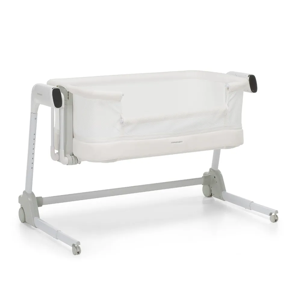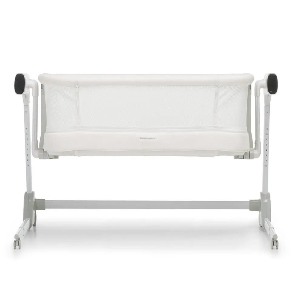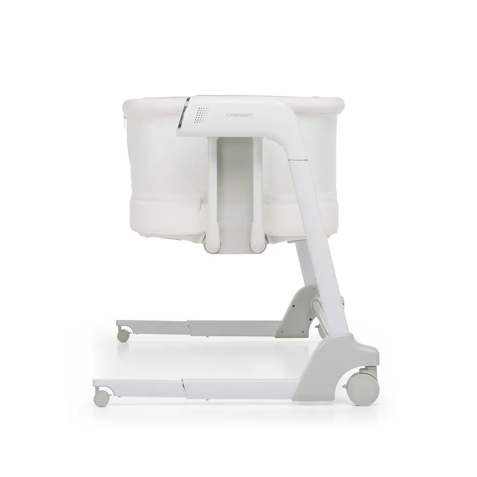 La versione co-sleeping, con fianco apribile e utilizzabile dalla nascita fino a 9 kg di peso, è regolabile in altezza in 8 posizioni, con funzione anti reflusso. Il dispositivo a dondolo con 5 velocità e scelta di 23 melodie musicali con display touch screen o telecomando in dotazione si attiva anche con il rilevamento pianto del bambino. Ha tessuto a rete per garantire un’ottimale areazione e dispositivo per il bloccaggio del movimento oscillatorio. Ha doppia alimentazione a batteria o a corrente.
