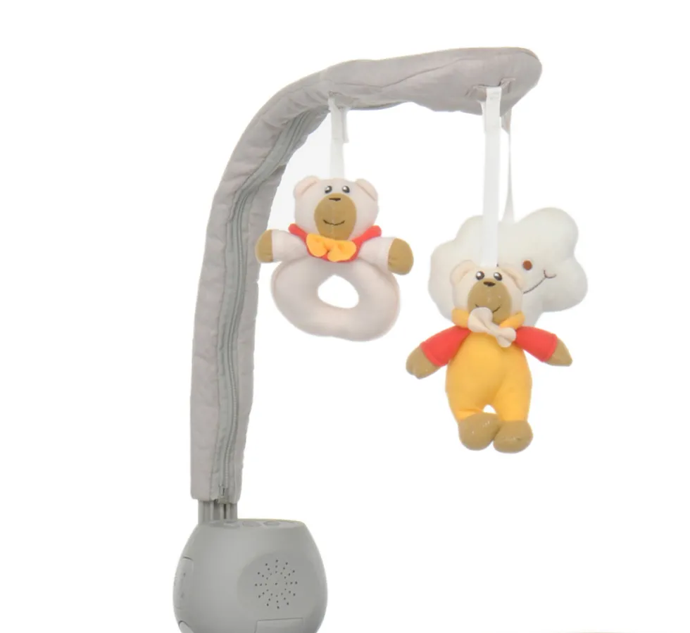 – Giostrina, progettata per intrattenere il piccolo con 3 peluche, 5 melodie musicali e 5 suoni della natura con volume regolabile. La barra porta giochi è rivestita con morbido tessuto e ha tre inclinazioni.