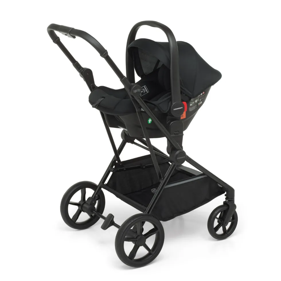 Il seggiolino auto Spritz i-Size è il seggiolino auto del passeggino Spritz e si utilizza per il trasporto in sicurezza del neonato nei primi mesi, fin dalla nascita: da 40 a 85 cm di altezza del bambino (peso max 13 kg). L’ovetto Spritz i-Size si fissa facilmente al telaio del passeggino Spritz con un pratico sistema di aggancio e sgancio, ha un comodo maniglione regolabile per il trasporto, seduta anatomica e riduttore ergonomico per i primi mesi, test di impatto laterale Safe Body Protection, capottina parasole richiudibile, poggiatesta e cinture di sicurezza a 3 punti regolabili simultaneamente con meccanismo a una mano.