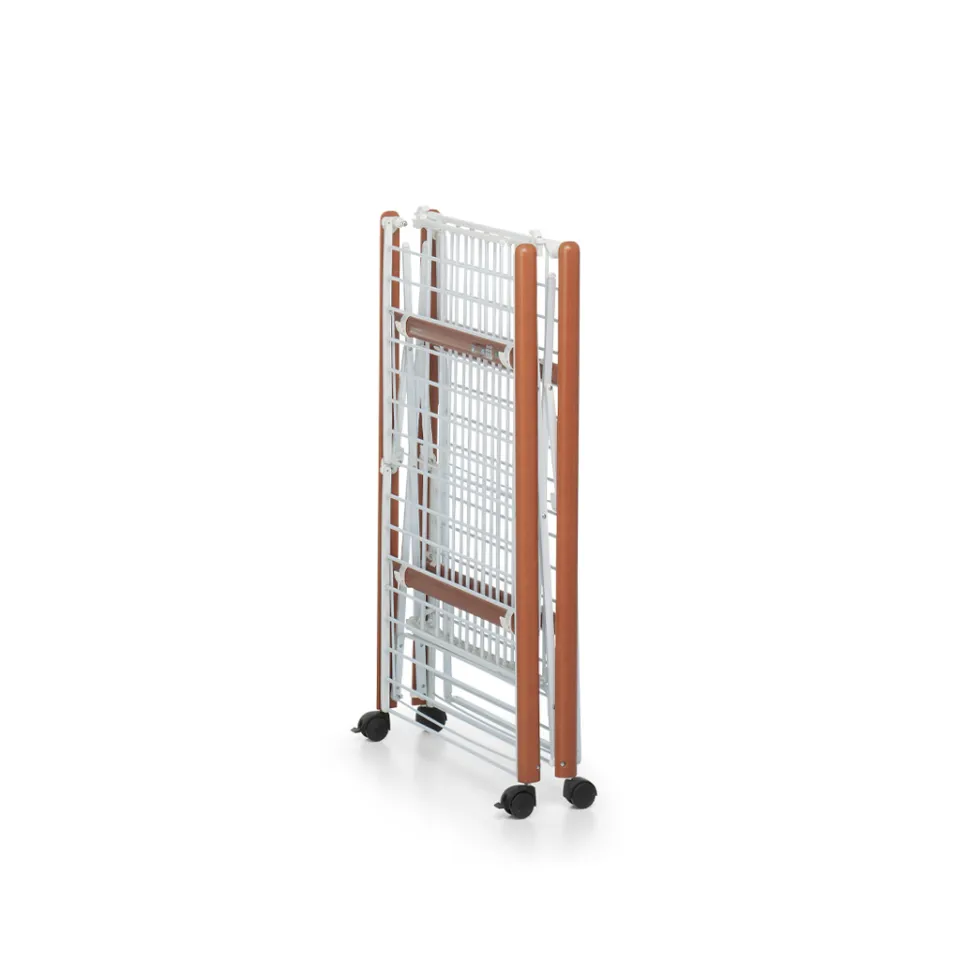 SuperGulliver 4.0 si apre secondo la necessità: i bracci laterali e frontali con bacchette in alluminio verniciato sono indipendenti. E quando è chiuso, sta in piedi da solo occupando solo 14 centimetri. E’ posizionabile ovunque.