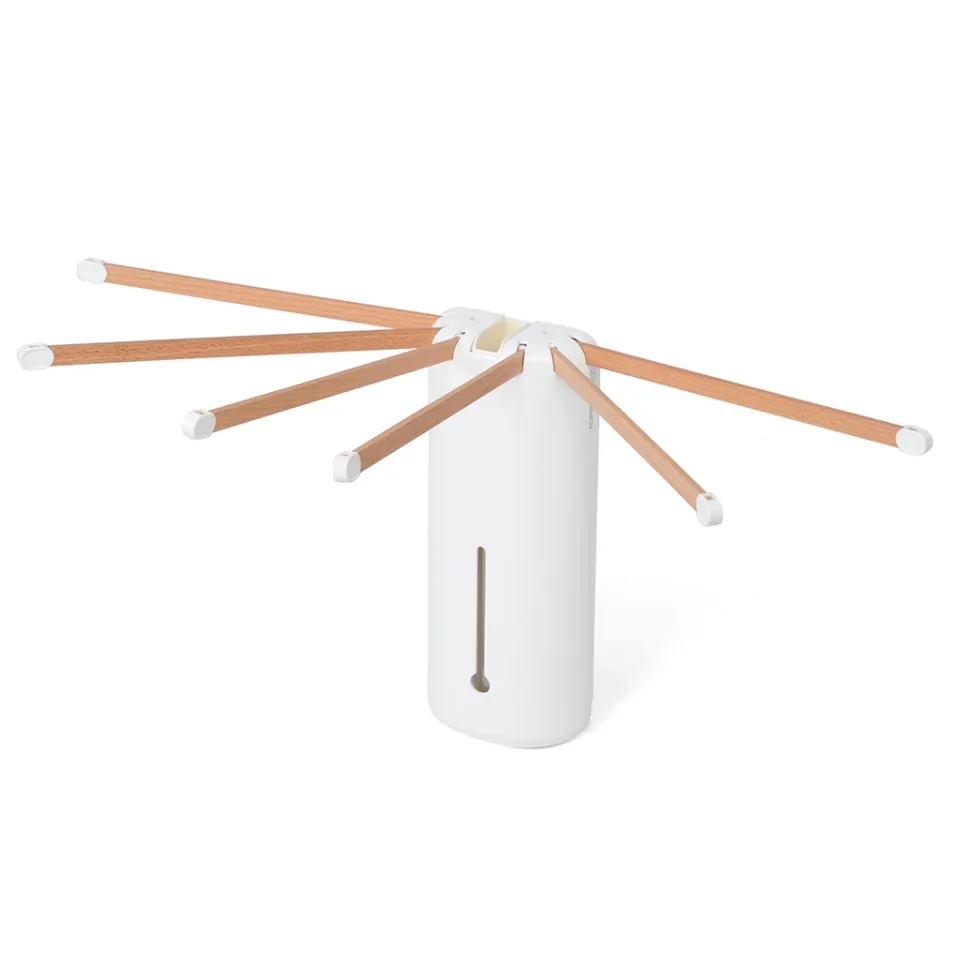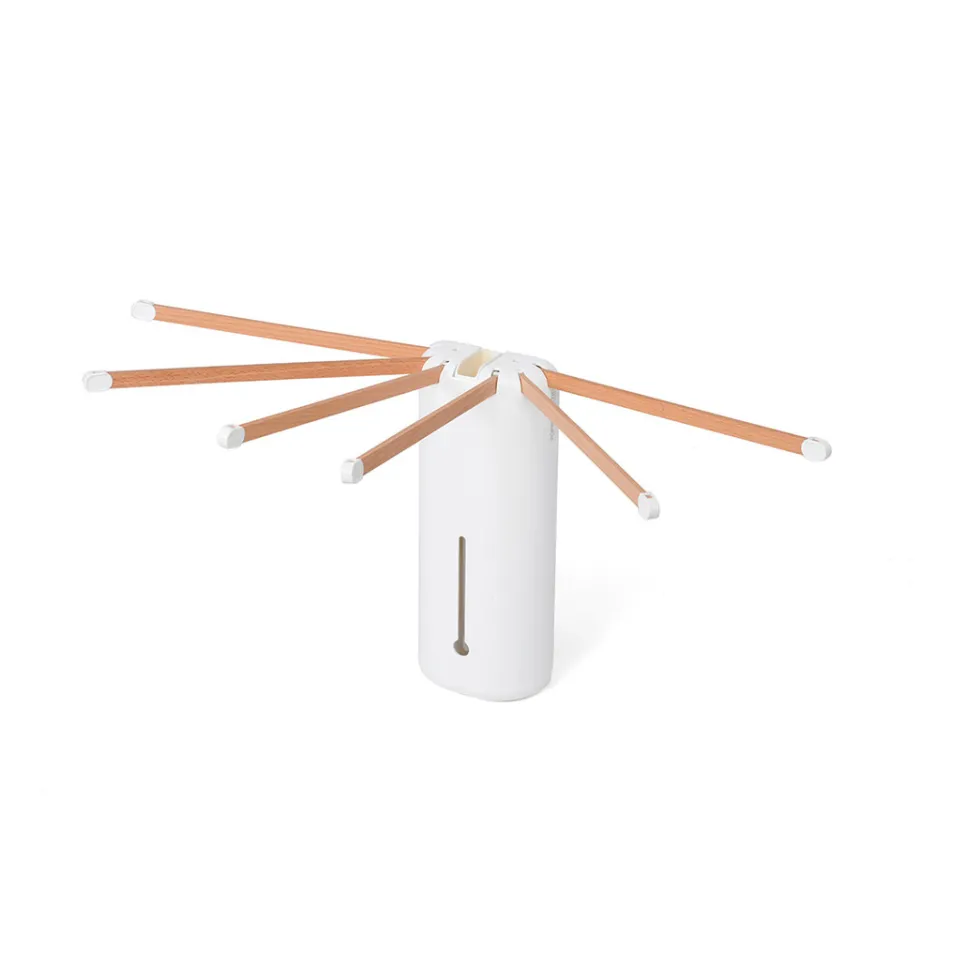 Lo stendipanni Plus di Foppapedretti è uno stendino da calorifero dotato di serbatoio estraibile per umidificare l’ambiente. Realizzato in materiale Abs bianco, con 6 raggi estraibili indipendenti in legno massiccio di faggio verniciato naturale. In dotazione i ganci per appenderlo al calorifero.