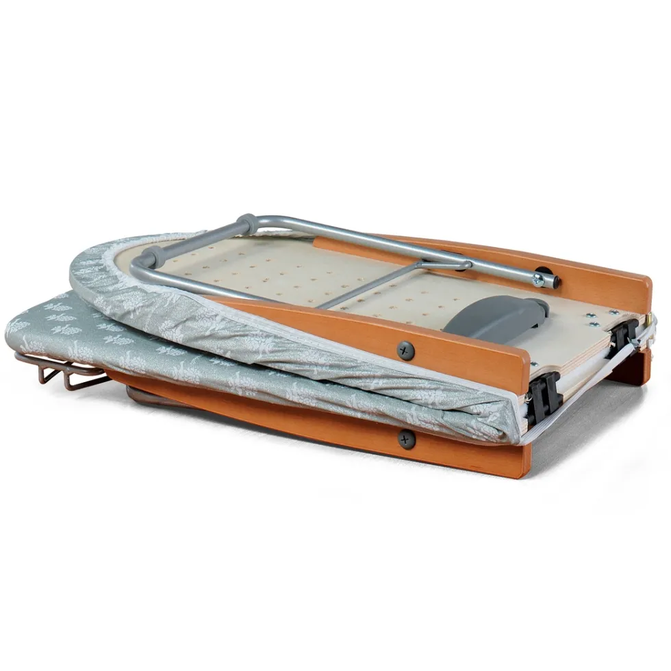 Il piano da stiro, in pioppo con fori traspiranti per evitare la condensa quando si stira, si ripiega ed è rivestito da “” in cotone e polvere di alluminio resistente alle alte temperature, mentre “” in poliestere 100% è inserito tra “” e il piano da stiro per proteggere il piano dal calore del ferro da stiro. Sia “” sia “” si possono acquistare separatamente come ricambio per i rivestimenti eventualmente usurati dall’utilizzo nel tempo.