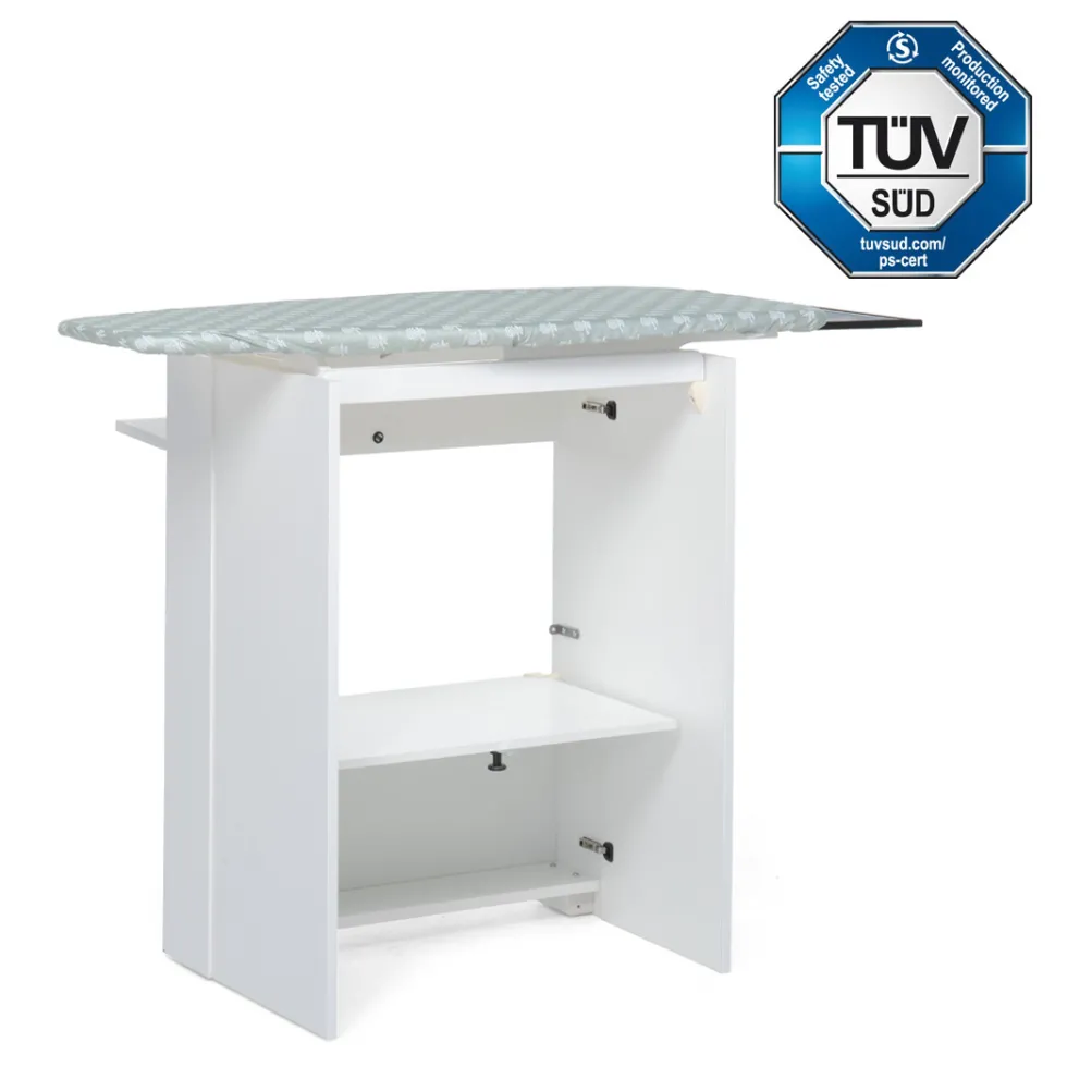 L’asse da stiro Stiraemolla di Foppapedretti si ripiega a scomparsa dentro al mobile in legno. Quando è chiuso, occupa pochissimo spazio: l’ingombro del mobiletto è di soli 17 centimetri!